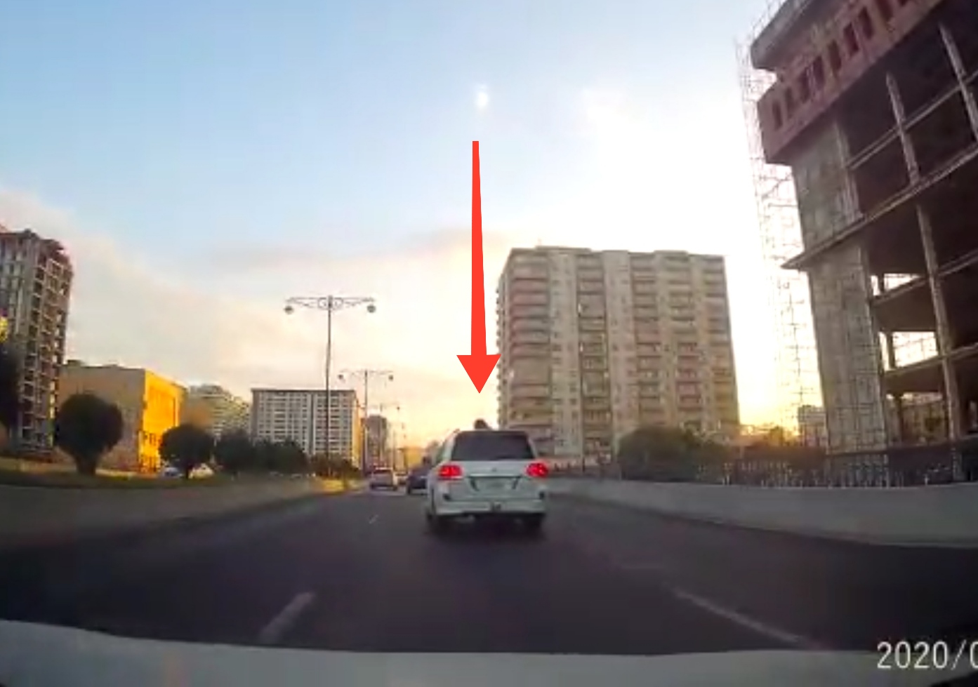 Bakıda sərnişinin təhlükəli hərəkətləri digər avtomobildəki kameraya qeyd olunub. Avtosfer.az xəbər verir ki, avqustun 5-i paytaxtın A.Salamzadə küçəsində hərəkət edən 10-ZV-200 qeydiyyat nişanlı "Toyota Land Cruiser" markalı avtomobildəki sərnişin başını bayıra çıxaraq təhlükəli hərəkət edib.