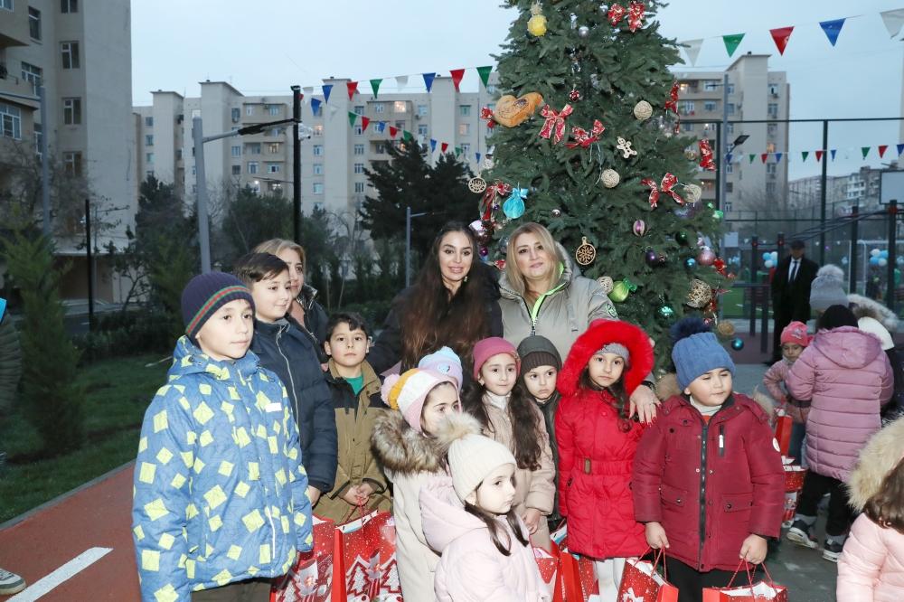 Yeni il bayramı ərəfəsinə təsadüf edən tədbir zamanı abadlaşdırılan həyətin kiçik sakinləri üçün xüsusi bayram şənliyi təşkil olunub, uşaqlara bayram hədiyyələri təqdim edilib. Musiqili əyləncə proqramları ilə zəngin şənlik uşaqlarda xoş bayram əhvali-ruhiyyəsi yaradıb, onlara sevinc dolu anlar bəxş edib.