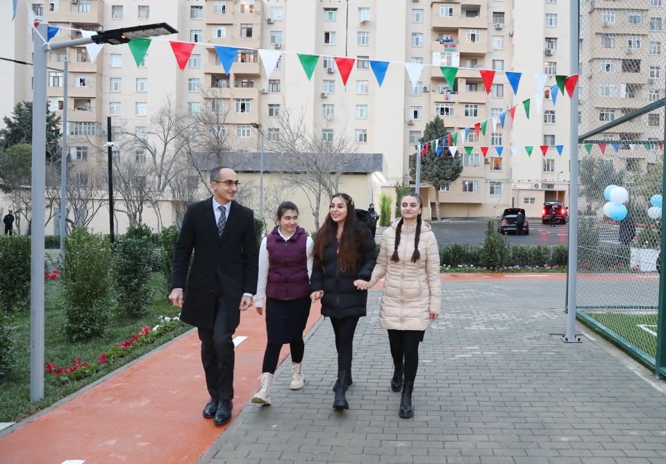 Abadlaşdırılan növbəti həyətdə sağlamlıq imkanları məhdud insanların rahat hərəkəti nəzərə alınıb, bütün yaş qrupları üzrə uşaqların inkişafı üçün əlverişli şəraitin yaradılması, gənclərin asudə vaxtlarının səmərəli təşkili və onlarda idmanla məşğul olmaq həvəsinin yaradılması məqsədilə ərazidə süni örtüklü 2 mini futbol stadionu, 2 şahmat meydançası, müxtəlif idman qurğuları, uşaq meydançaları salınıb. Eyni zamanda, ərazidə 12 söhbətgah, çoxsaylı oturacaqlar, tullantılar üçün qutular, quş yuvaları və pişik evləri quraşdırılıb.