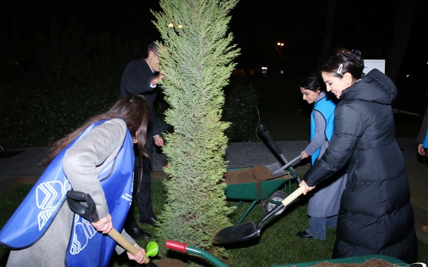 Leyla Əliyevanın iştirakı ilə Bakının Nərimanov rayonunda yerləşən Atatürk parkında layihə üzrə ilk ağacların qeydiyyatı aparılıb, üzərinə nömrəli etiketlər vurulub.