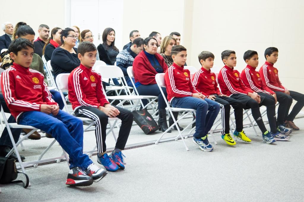 Bakı Olimpiya Stadionunda keçiriləngörüşdə Bakıda təşkil olunmuş "Mançester Yunayted” Yay Futbol Məktəbində təlim zamanı ən yüksək nəticələr göstərən5 gəncəMançesterə səfər etmək hüququnu verənsertifikat təqdim edilib.