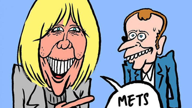 7News.az xəbər verir ki, jurnal bu dəfə prezidentliyə namizəd Emmanuel Makronu və onun özündən 24 yaş böyük olan xanımını ələ salıb. Şəkildə Bricit Makron öndə təqdim olunur və illər əvvəl müəllimlik etdiyi kimi, indi də Emmanuelə göstərişlər verir.