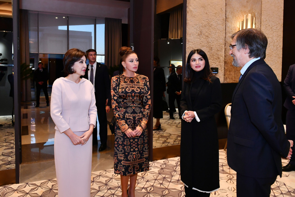 7NEWS.Az xəbər verir ki, Azərbaycanın birinci xanımı Mehriban Əliyeva, Özbəkistanın birinci xanımı Ziroatxon Mirziyoyeva, Türkiyə Respublikasının birinci xanımı Əminə Ərdoğan, Macarıstanın Baş nazirinin xanımı Aniko Levai birlikdə sərgiyə baxıblar.