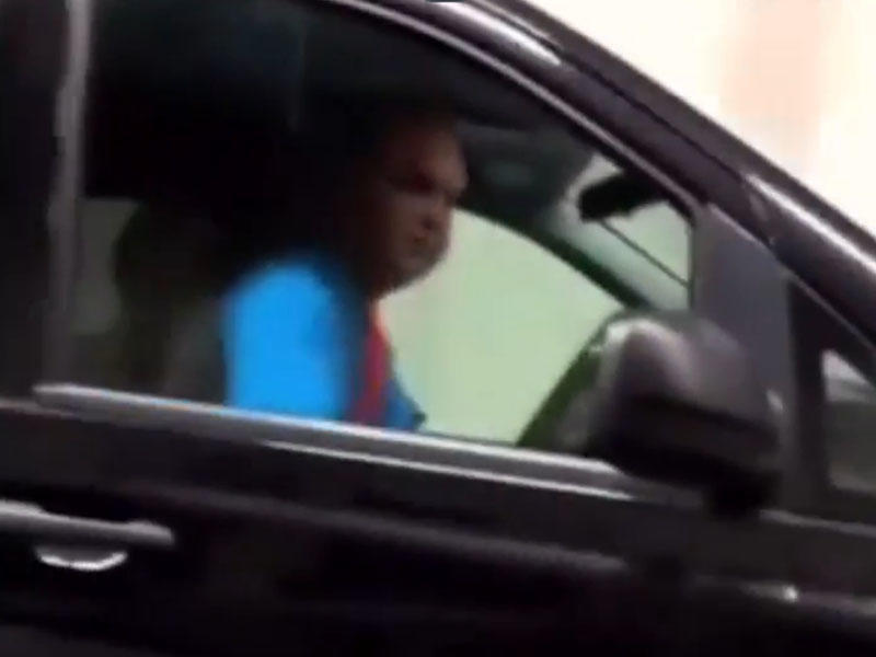Videoya çəkildiyini görən qadın özünü gizlədib, sürücü isə onu kameraya çəkən şəxsi söyüb.