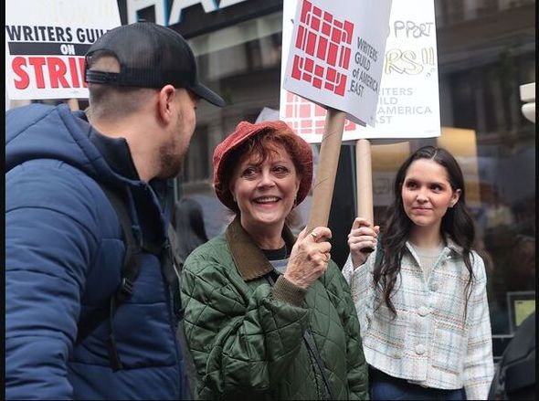 Sarandon Kapitolidə keçirilən restoran işçilərinin minimum əməkhaqqının artırılması ilə bağlı etiraz aksiyasında iştirak edib. Restoran işçiləri minimum əməkhaqqının saatda 17 dollara qədər artırılması üzrə yeni ştat qanunvericiliyinə daxil edilməyiblər.