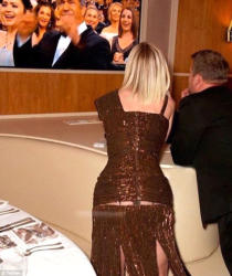 O, parıltılı libası ilə göz oxşasa da bir neçə dəqiqə sonra biabır olub. Belə ki, paltarının arxa hissəsi yırtılan müğənni "frikik" verib.