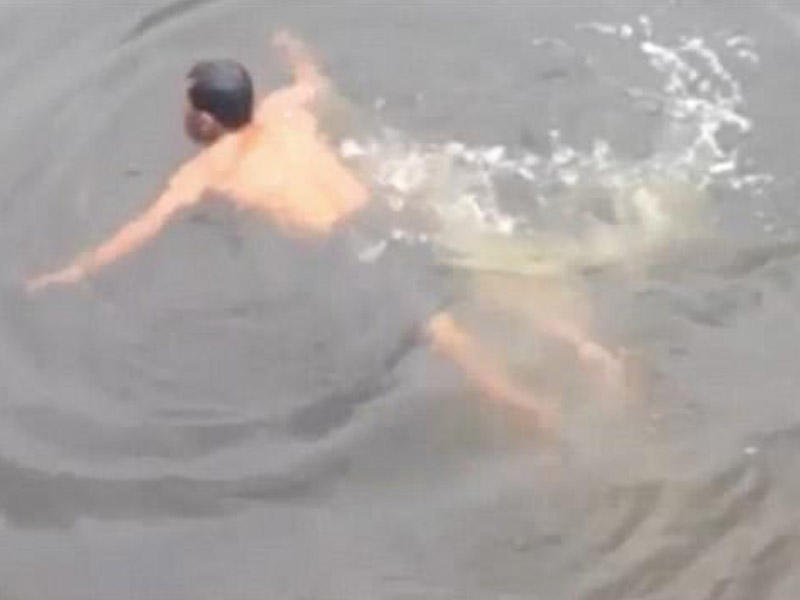 O, suyun altında bir az qalandan sonra üzməyə başlayıb.