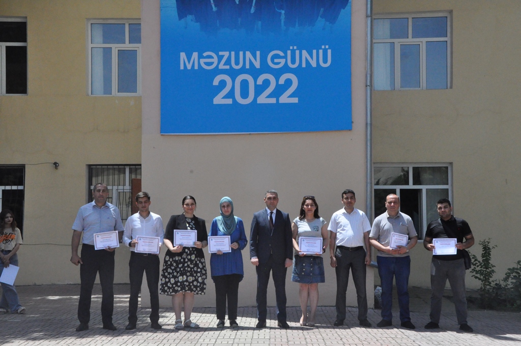 Sonda "Məzun Günü-2022” tədbirinin təşkilində fəal iştirak edən gənclər təşəkkürnamə ilə təltif edilib və xatirə şəkilləri çəkdirilib.