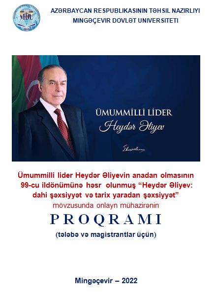 2022-ci ilin 6 may tarixində Mingəçevir Dövlət Universitetində (MDU) Təhsil fakültəsinin Humanitar fənlər kafedrasının təşkilatçılığı ilə ümummilli lider Heydər Əliyevin anadan olmasının 99-cu ildönümünə həsr olunmuş "Heydər Əliyev: dahi şəxsiyyət və tarix yaradan şəxsiyyət” mövzusunda mühazirə keçirilib.