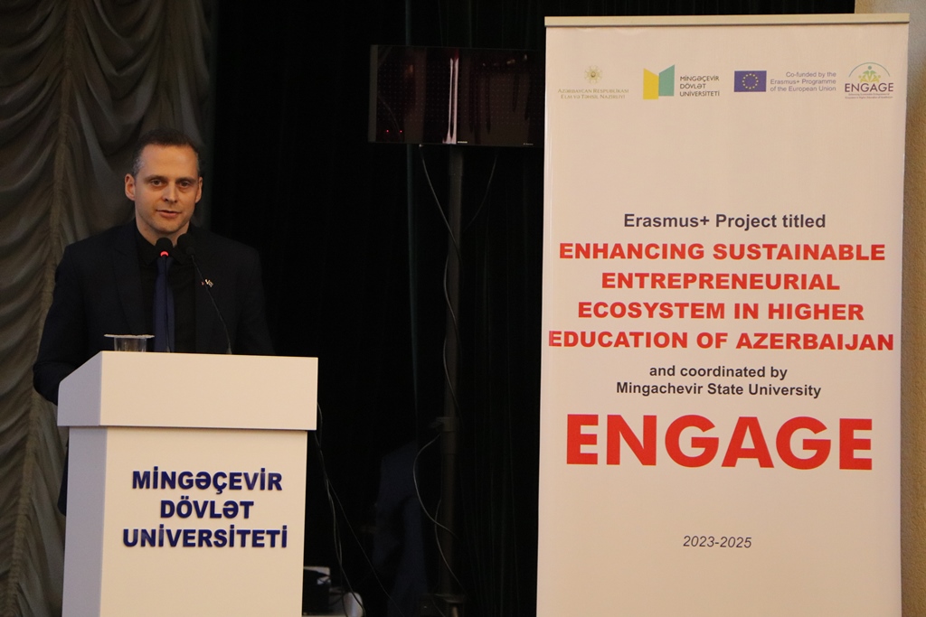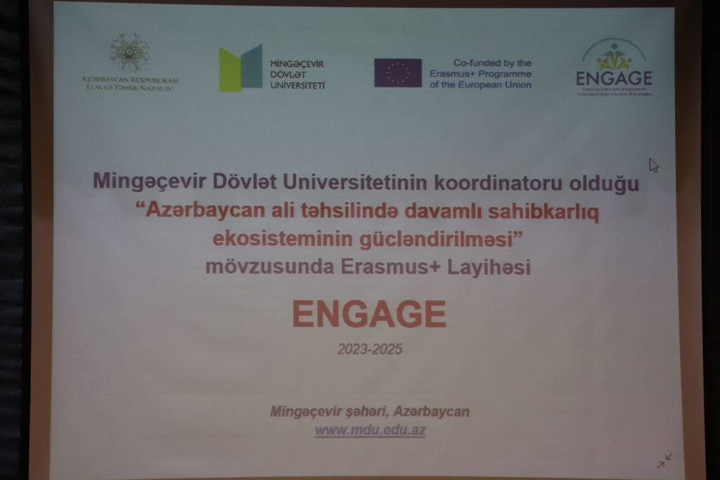 2023-cü ilin aprelin 12-də Mingəçevir Dövlət Universitetində (MDU) bu ali təhsil müəssisəsinin koordinatoru olduğu "Azərbaycan ali təhsilində davamlı sahibkarlıq ekosisteminin gücləndirilməsi” (Enhancing Sustainable Entrepreneurial Ecosystem in Higher Education of Azerbaijan - ENGAGE) mövzusunda Erasmus+ layihəsinin açılış mərasimi keçirilib.