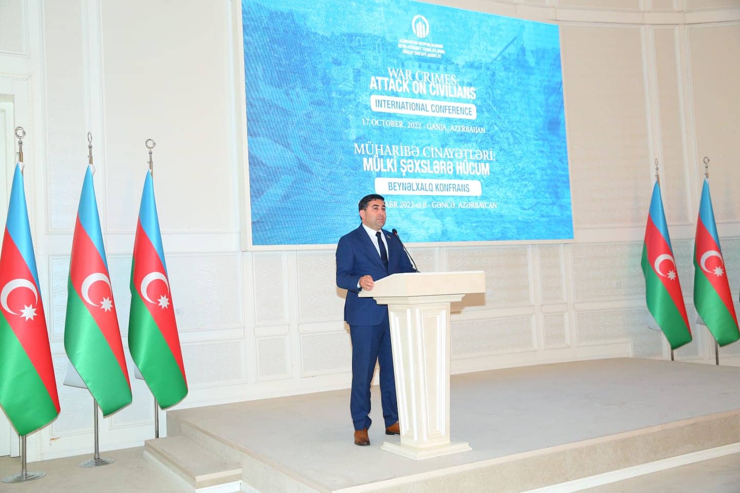 Konfransa açılış nitqi ilə başlayan Qeyri-Hökumət Təşkilatlarına Dövlət Dəstəyi Agentliyinin İcraçı direktoru Aygün Əliyeva Gəncə terrorunun ikinci ildönümü ərəfəsində beynəlxalq konfransın təşkil edilməsinin əhəmiyyətindən danışıb, Ermənistanın döyüş meydanında yaşadığı məğlubiyyətin əvəzində mülki əhaliyə və infrastruktura vurduğu ziyanın hərbi cinayətkarlığın və barbarlığın göstəricisi olduğunu qeyd edib. "Təəssüflə qeyd etməliyik ki, Ermənistan tərəfindən Azərbaycana qarşı törədilən müharibə cinayətləri bu gün də davam edir, 30 il ərzində mina partlayışı nəticəsində 3000-dən artıq Azərbaycan vətəndaşı həyatını itirib və ya xəsarət alıb. İşğaldan azad olunmuş ərazilər minalardan təmizləndikcə aşkar edilən kütləvi məzarlıqlar isə azərbaycanlılara qarşı törədilən etnik təmizləmə siyasətinin bariz nümunəsidir. Regionda yaranmış yeni siyasi reallığı nəzərə alaraq, vətəndaş cəmiyyəti nümayəndələri də Azərbaycan həqiqətlərinin dünya ictimaiyyətinə çatdırılmasında fəallığını davam etdirməli, Ermənistanın " Müharibə qurbanlarının müdafiəsi haqqında” , "Müharibə zamanı mülki əhalinin müdafiəsi haqqında” və. s. konvensiyaların normalarını kobud şəkildə pozduğunu və beynəlxalq hüquqi məsuliyyətə cəlb olunmasının vacibliyini beynəlxalq təşkilatların diqqətinə çatdırmalıdır”