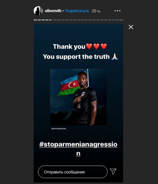 Xatırladaq ki, Essyen özünün "Instagram” səhifəsində dəfələrlə Azərbaycanın bayrağını və ölkənin güclü olduğunu ifadə edən emojilər paylaşaraq Azərbaycan dilində "Şəhidlər ölməz, vətən bölünməz” sözlərini yazıb.