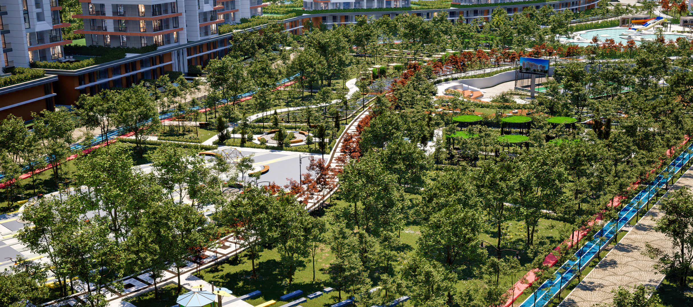 Geniş həyətin üstünlükləri bununla bitmir. Sağlam həyat tərzi yaşayanlar həyətdəki veloyol, basketbol, futbol meydançaları, açıq havada fitnes sahəsindən də faydalana bilər.