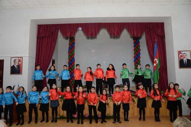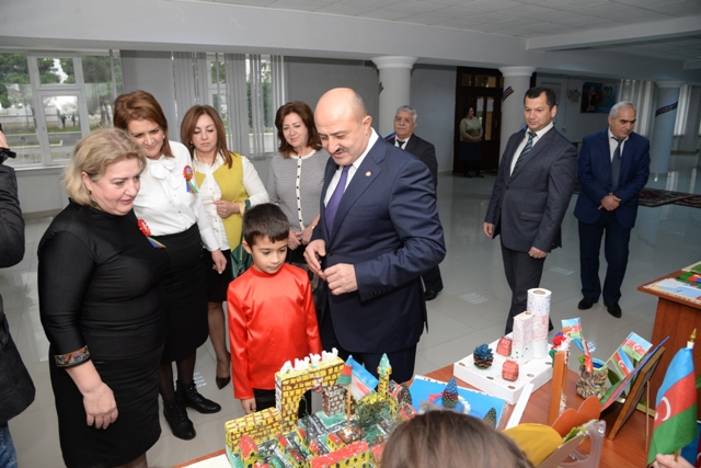 Məktəbin foyesində şagirdlərin müxtəlif kreativ əl işlərindən ibarət rəngarəng sərgi təşkil olunmuşdu. Sərgidə 3 rəngli bayrağımızı və tarixi abidələrimizi simvolizə edən müxtəlif eksponatlar öz əksini tapmışdı.