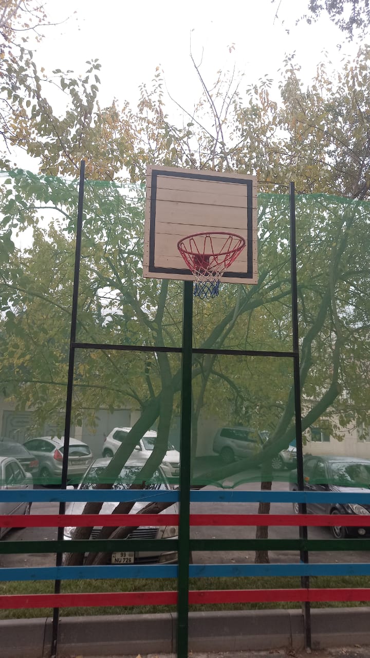 Həyətdə yüngül konstruksiyalardan ibarət basketbol meydançası quraşdırılmış və işıqlandırma sistemi yenidən qurulmuşdur.