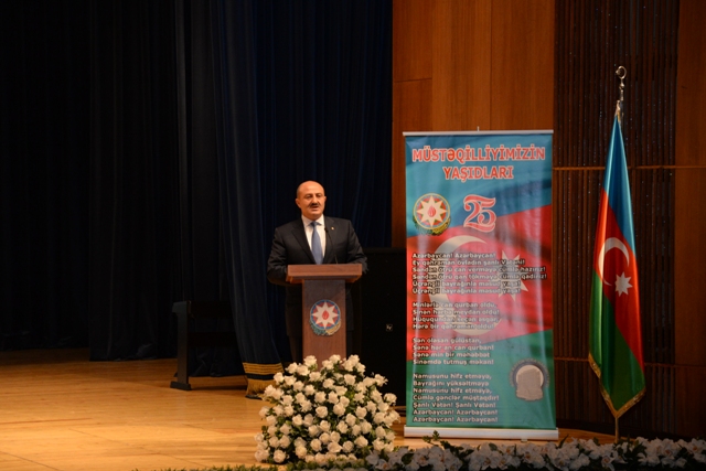 Tədbiri giriş sözü ilə açan Nəsimi rayon İcra Hakimiyyətinin Başçısı Asif Əsgərov çıxış edərək bildirdi ki, Azərbaycan bir əsrdə iki dəfə müstəqillik əldə etmək, özünün suveren dövlətini yaratmaq imkanı qazanmışdır. Təəssüf ki, birinci imkan xarici müdaxilə, daxili çəkişmələr və beynəlxalq təminatın olmaması səbəblərindən itirildi. 1918-ci ildə qurulmuş Azərbaycan Xalq Cümhuriyyəti cəmi 23 ay yaşadı. İkinci tarixi imkan bir də 70 il sonra yarandı. Sovet imperiyasının dağılması Azərbaycan xalqına öz milli müstəqilliyini bərpa etmək imkanı verdi. 1991-ci il oktyabrın 18-də Azərbaycan Respublikası Ali Sovetinin sessiyasında "Azərbaycanın dövlət müstəqilliyi haqqında Konstitusiya Aktı" qəbul olundu. Bu mühüm tarixi sənədlə xalqımız uzun illərdən bəri həsrətində olduğu azadlığına qovuşdu.