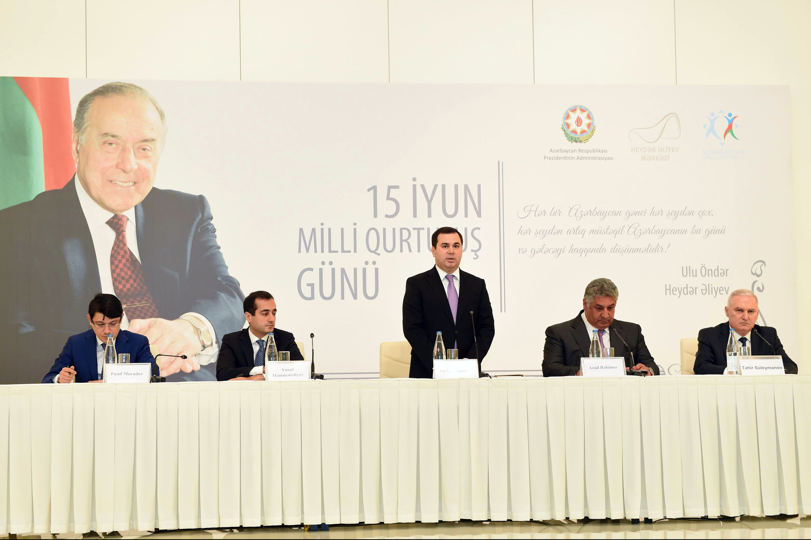 Heydər Əliyev Mərkəzində Azərbaycan Respublikasının Prezidenti yanında Gənclər Fondunun təşkilatçılığı ilə 15 İyun - Milli Qurtuluş Gününə həsr edilmiş tədbir keçirilib.