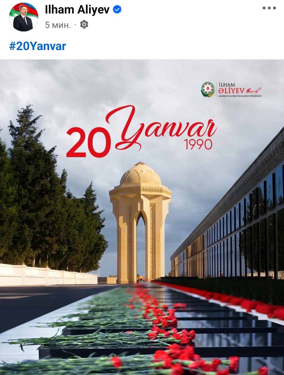 Azərbaycan Prezidenti İlham Əliyev 20 Yanvar faciəsi ilə bağlı sosial şəbəkə hesabında paylaşım edib. 7NEWS.Az paylaşımı təqdim edir: