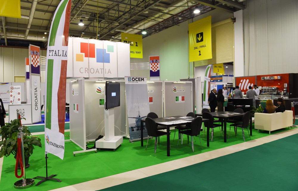 Dövlətimizin başçısı sərgidə İtaliyanın stendinə də baxdı. Burada "İT Azercom” Azərbaycan-İtaliya Ticarət Palatasının dəstəyi ilə 3 şirkət iştirak edir. Onlar İKT sahəsində innovativ məhsullarını və xidmətlərini təklif edirlər. Onların arasında İT, memarlıq, dizayn, işıqlandırma, lazer kartric xidmətləri var. İtaliyanın sərgidə iştirak edən şirkətləri öz sahələrində tam ixtisaslaşmış nüfuzlu qurumlardır.