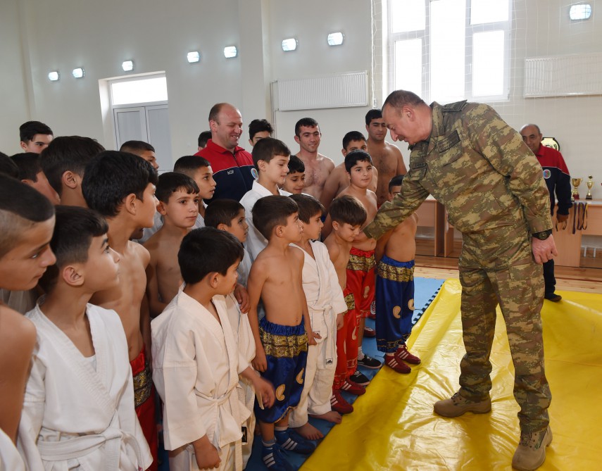 Dövlətimizin başçısı gənclərin çağırışaqədərki hazırlıq kabinetində Azərbaycanın hərbi təhsil müəssisələrinin Füzuli rayonundan olan kursantları ilə və şagirdlərlə söhbət etdi. Azərbaycan Prezidenti məktəbin idman zalında gənc idmançıların çıxışlarına baxdı, onlarla xatirə şəkli çəkdirdi.