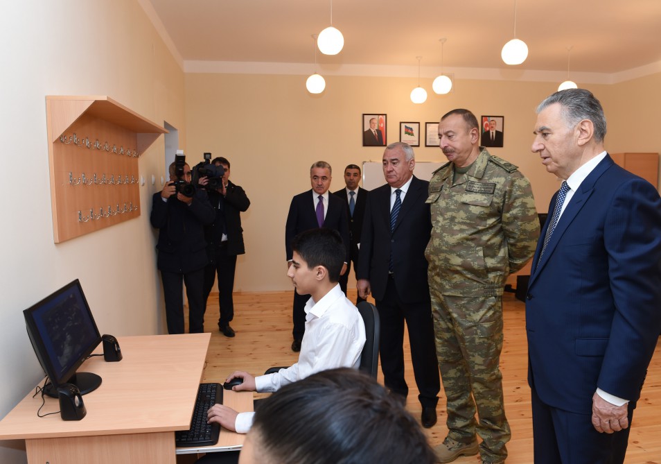 Qəsəbədəki məktəbdə olan Prezident İlham Əliyevə məlumat verildi ki, bu təhsil ocağı 320 şagird yerlikdir. Binanın foyesində ümummilli lider Heydər Əliyevin büstü qoyulub. Bundan başqa, burada ulu öndər Heydər Əliyevin və Prezident İlham Əliyevin qaçqın və məcburi köçkünlərə qayğısını və onlarla görüşlərini əks etdirən fotostendlər yaradılıb. Burada aprel döyüşlərində Ordumuzun qələbəsini əks etdirən fotolardan ibarət guşə, həmçinin indiyədək istifadəyə verilmiş yeni qəsəbələrin fotostendləri də var. Məktəbin hərbi kabineti əyani vəsaitlərlə zənginləşdirilib. Akt zalında müxtəlif tədbirlərin keçirilməsi üçün bütün imkanlar var. Kompüter otağında isə şagirdlər informasiya texnologiyalarının sirlərinə yiyələnəcəklər.