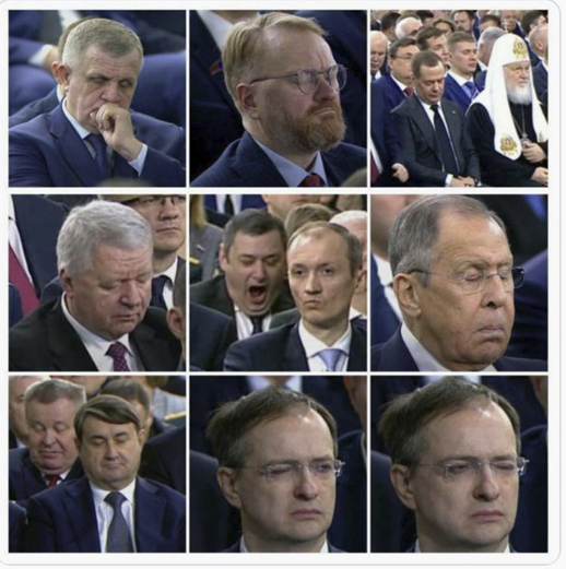 Bir sıra xarici media və sosial şəbəkələrdə yayılan görüntülərdən vəzifəli şəxslərin bəzilərinin əsnədiyini, bəzilərinin isə, hətta yatdığını görmək mümkündür. Ən çox diqqət çəkən isə Dövlət Dumasının üzvü Leonid Slutskiyin yatması olub.
