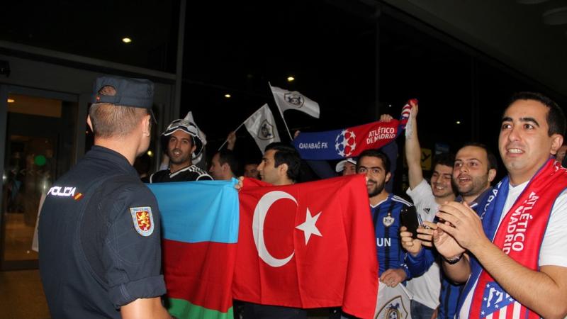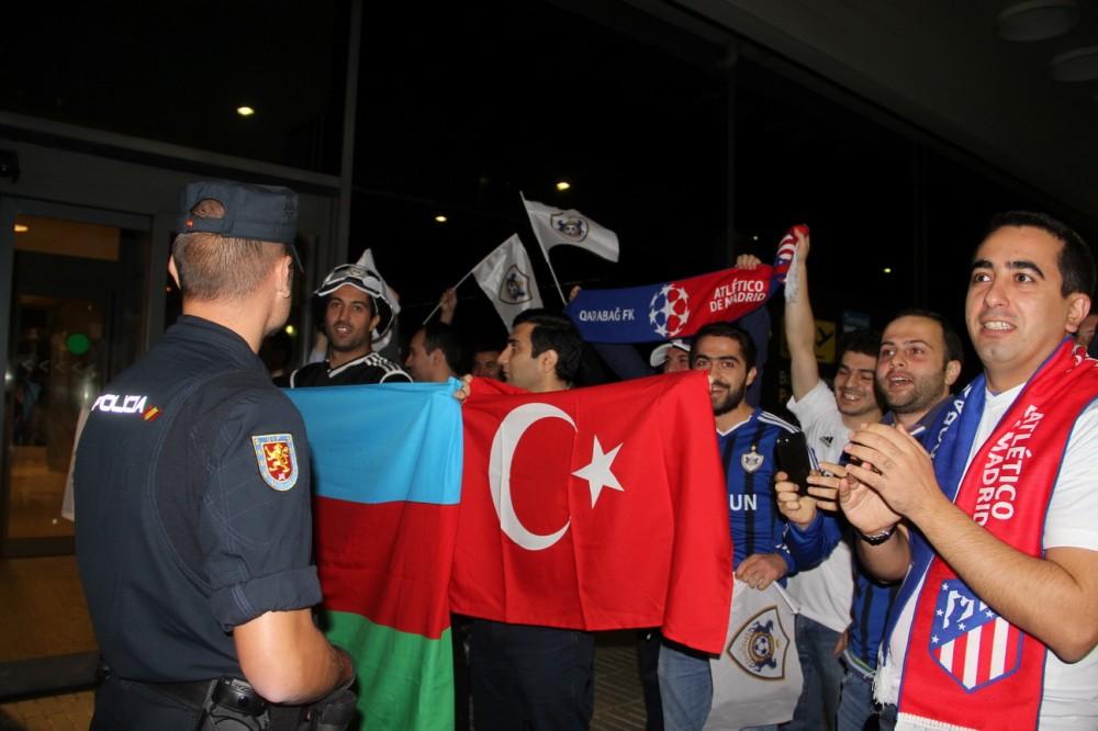 Madridin Adolfo Suares Barajas hava limanında komandamızı azarkeşlər və diplomatlarımız qarşılayıblar. Azərbaycanın İspaniyadakı səfirliyi tərəfindən "Qarabağ" komandasının geyimləri və atributları ilə təmin edilmiş həmvətənlərimiz komandanı şüarlar və alqışlarla qarşılayıblar.