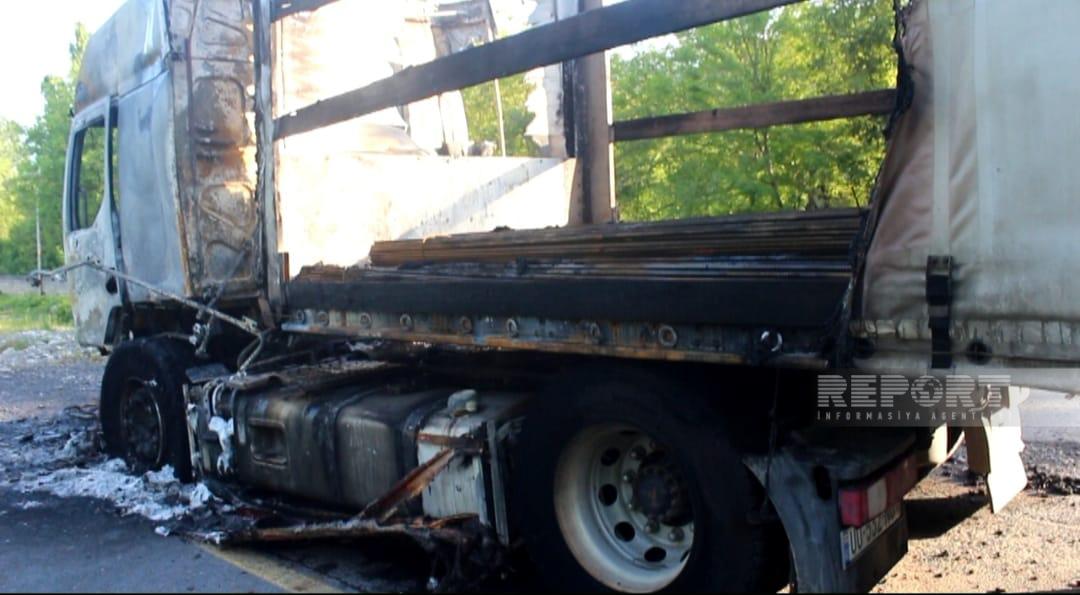 Qaxda İran vətəndaşına məxsus yük avtomobili (TIR) yanaraq yararsız vəziyyətə düşüb.