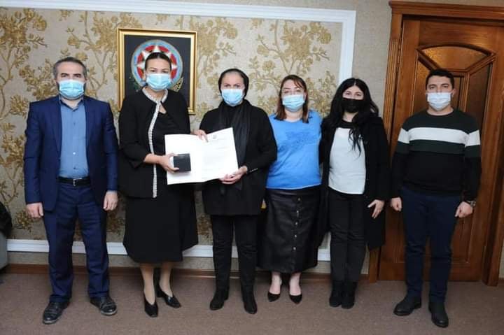 Şəhid anası ilə ətraflı söhbət edən Q.Paşayeva, ona tarixi zəfər münasibəti ilə Mədəniyyət Komitəsi adından Məktub və üzərinə "Qarabağ Azərbaycandır!” yazılmış saat təqdim edib.