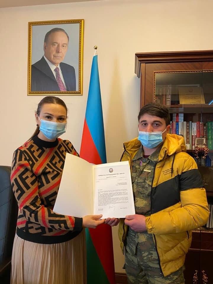 Sizin və cəbhə yoldaşlarınızın fədakarlığı sayəsində torpaqlarımız Ermənistanın işğalından azad olunub, xalqımızın 30 illik torpaq həsrətinə son qoyulub.