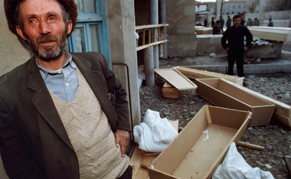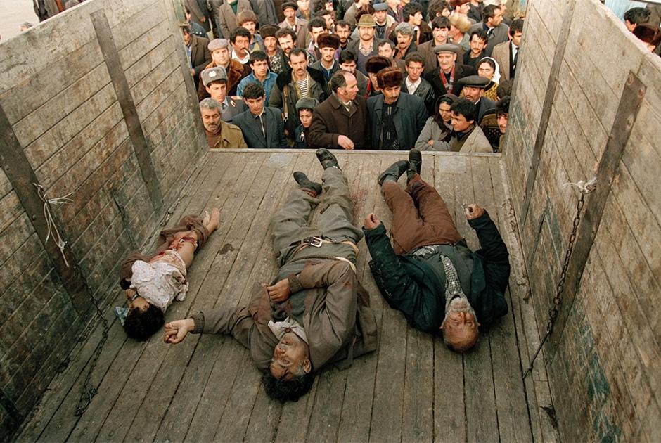 "İlk dəfə iki hərbi vertolyotun müşahidəçiliyi ilə fevralın 28-də faciə ərazisinə daxil oldum. Hələ havadan yerə baxanda 500-ə qədər donmuş meyit gördüm. Bizi müşahidə edən polislər meyitləri qohumlarına çatdırmalı idi. Əsl şok yaşadıq. Aramızda olan iki nəfər mənzərədən huşunu itirdi. Çoxları isə qusdu" deyə, mərhum jurnalist Çingiz Mustafayev yazıb".
