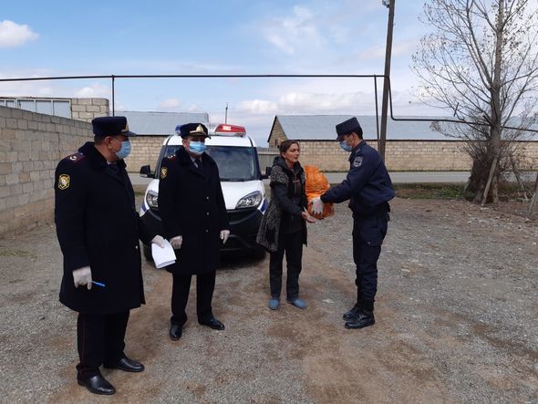 Daxili İşlər Nazirliyinin Mətbuat xidmətinin Gəncə regional qrupundan verilən məlumata görə, bu tədbirlər çərçivəsində Samux  Rayon Polis Şöbəsinin əməkdaşları rayonda yaşayan, torpaqlarımızın müdafiəsi uğrunda şəhid olmuş soydaşlarımızın ailələrinə, eləcə də maddi cəhətdən imkanı zəif olan aztəminatlı ailələrə, yaşı 65-dən yuxarı olan və tənha yaşayan vətəndaşlarımıza "Evdə qal” devizi altında müxtəlif ərzaq məhsullarından ibarət sovqatlar verilib.