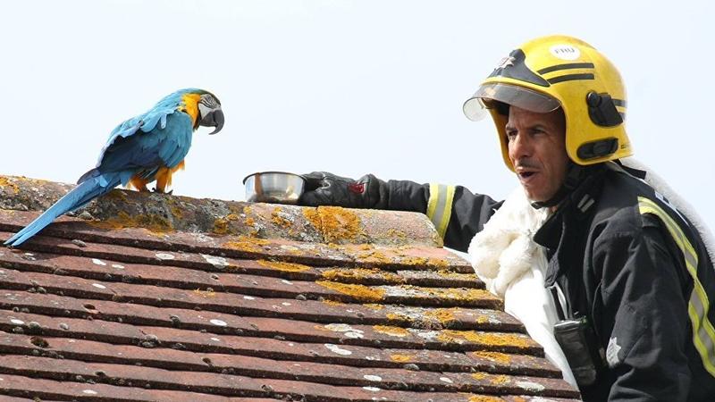 Londonun yanğınsöndürmə xidmətinə bağlı Heyvanları Qoruma Birliyinin işçiləri hadisə yerinə gəlib. Cessinin sahibi xilasedicilərdən tutuquşu ilə əlaqə qura bilmək "səni sevirəm” demələrini rica edib. Xilasedici dama çıxıb və quşun sahibinin dediklərini təkrarlayıb. Tutuquşu da öz növbəsində xilsediciyə "səni sevirəm” deyib, lakin ardınca söyüş söyüb.