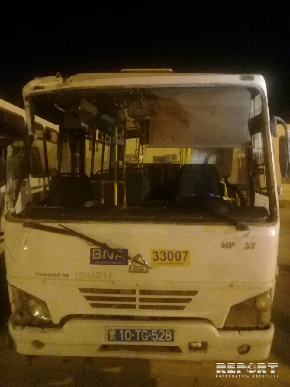 Faktla bağlı Binəqədi Rayon Polis İdarəsində araşdırma aparılır. Qəzaya uğrayan avtobus cərimə meydançasına yerləşdirilib./report
