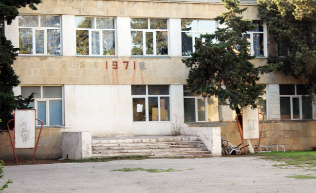 Sonra yolumu müəmmalarla dolu 113 saylı orta məktəbdən salıram. Şənbə günü və axşamüstü olduğu üçün, məktəbdə heç kim yoxdur. Bir neçə foto çəkməklə kifayətlənməli oluram./sputnik