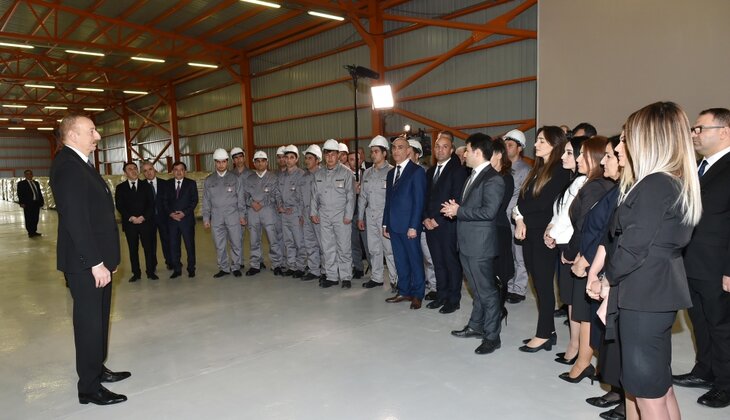 Bu gün bu zavodun açılışı bir daha onu gösterişir ki, ölkəmizdə düzgün iqtisadi siyasət aparılır. Biz sahibkarlıqla bağlı görülən tədbirlərin real nəticəsini görülük. Çünki bizim iqtisadiyyatımız özəl sektor hesabına inkişaf etməlidir. Dövlət, sadəcə olaraq, ş yaratrait yaratmaktadır, infrastruktur layihələri həyata keçirməlidir ki, sahibkarlar da bu işlə həvəslə məşğul olsunlar ".