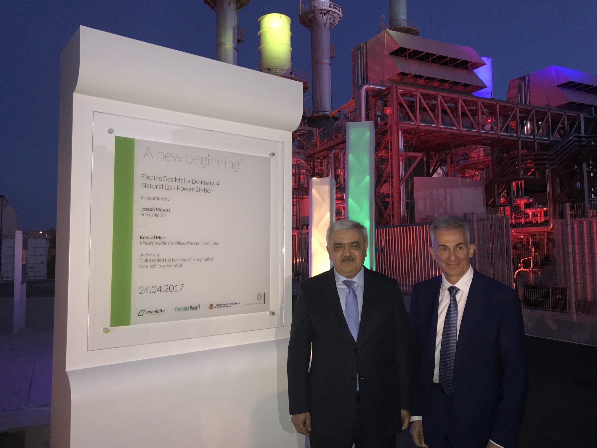 Tədbirin birinci hissəsində Maltanın Baş naziri Cozef Muskat rəsmi şəxslər, eləcə də Marsaşlokk sakinlərinin müşayiəti ilə mazutla çalışan "Delimara-1" stansiyasının istismardan çıxarılması ilə bağlı rəsmi mərasim keçirib. Çıxışı zamanı C.Muskat səhmdarlar - "SOCAR Trading", "SiemensPV" və "GEMHolding" şirkətlərinin dəstəyi ilə "ElectroGas Malta"nın gördüyü gərgin işlərin elektrik enerjisi qiymətlərini 25%, atmosferə zəhərli tullantıların miqdarını isə 90% azaltmağa imkan yaratdığını bildirib.