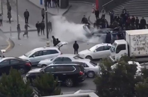 "Gənclik Mall"un qarşısında bahalı maşın yandı