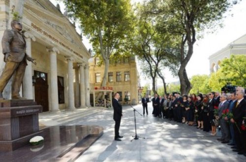 Prezident Rəşid Behbudovun heykəlinin açılışında -