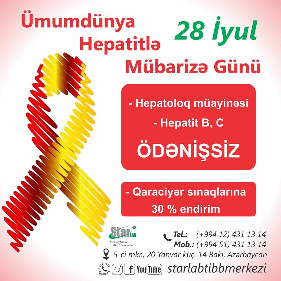 28 iyul "Ümumdünya Hepatitlə Mübarizə Günü" ilə əlaqədar hər kəsə Starlab Tibb Mərkəzindən