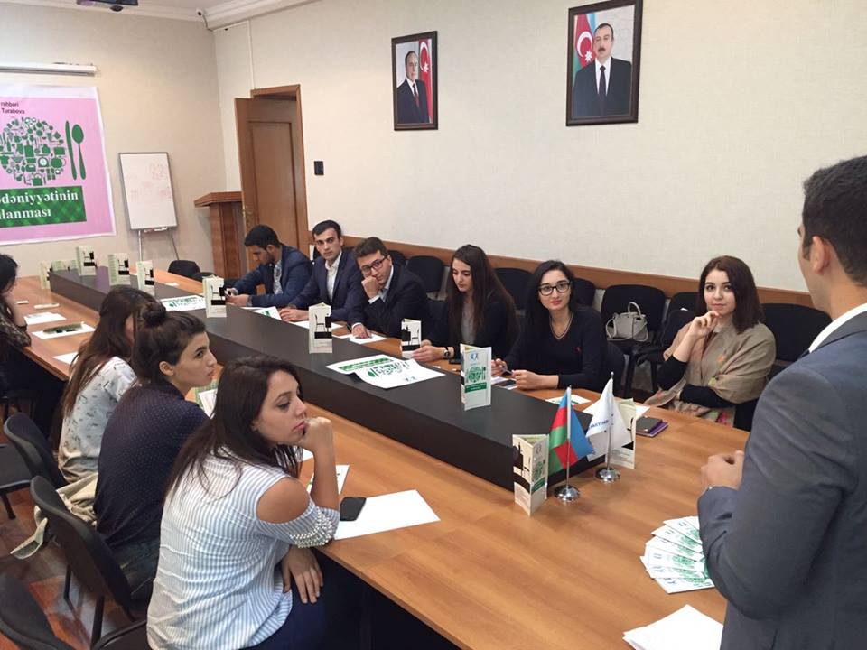 Tədbiri giriş sözü ilə açan layihə rəhbəri Rövşanə Turabova layihənin məqsədi və bundan sonra görüləcək işlər barədə iştirakçılara məlumat verib.Daha sonra təlimçi ,"İqtisadçı Tələbələrə Dəstək" İB-nin təsisçisi və sədri Səməd Rzazadə layihə haqqında ətraflı məlumat verib.Layihədə masa ətrafında düzgün oturuş və etik qaydalar haqqında məlumat verilib.Gənclər arasında müzakirələr aparılıb.