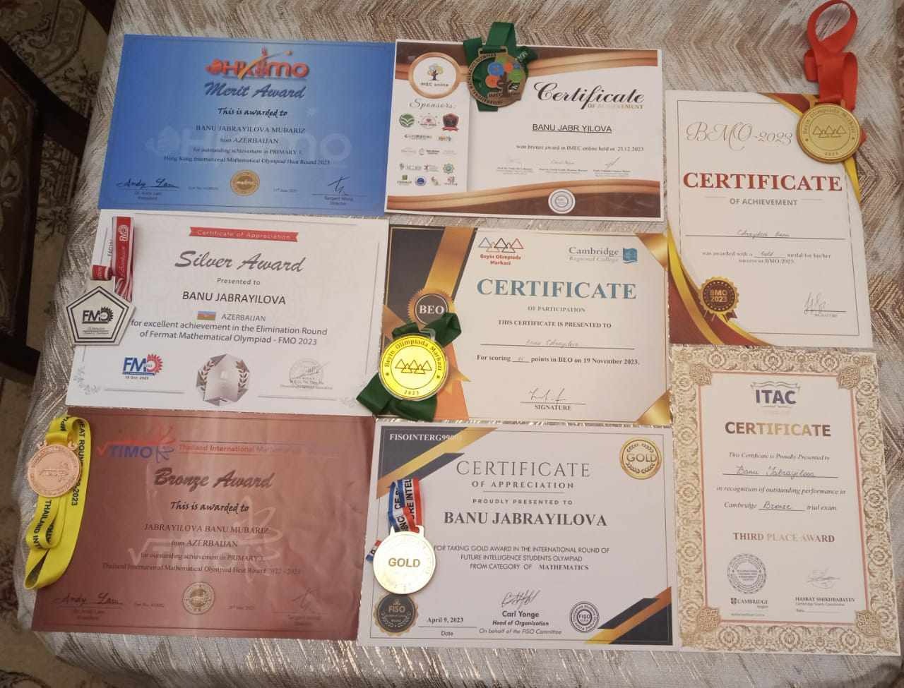 Sumqayıt şəhər İ.Qayıbov adına 1 nömrəli tam orta məktəbin 4d sinif şagirdi olan Banu Cəbrayılova 2023-cü ildə keçirilmiş beynəlxalq riyaziyyat olimpiadalarından FiSO qızıl medal, TİMO bürünc, HKİMO merit, FMO-da gümüş, İMEC bürünc, BMO-da qızıl, AMO-da gümüş medallar qazanıb. İki dəfə də Cambridge beynəlxalq ingilis dili sınağından bürünc sertifikat qazanıb.