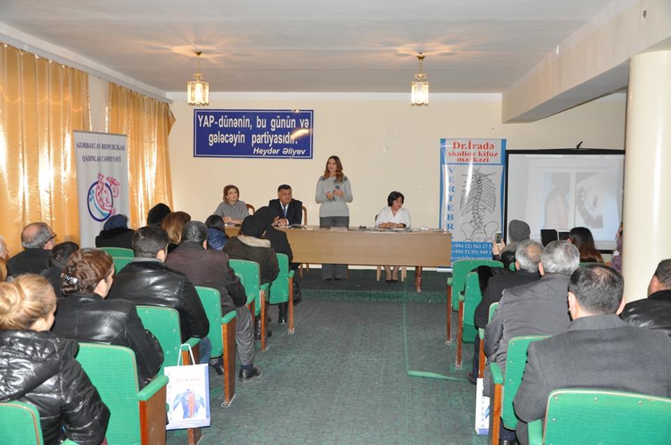 Tovuz şəhərində məktəb müəllimlərinin, rayon və kəndlərdən olan ziyalıların, həkimlərin və tibb işçilərinin iştirakı ilə keçirilən toplantılarda çıxış edən millət vəkili Q.Paşayeva bildirib ki, uşaqlar arasında skalioz və kifozların surətlə artması hamını ciddi narahat edir və zamanında bu hal aşkarlanıb tədbirlər görülməzsə, bundan əziyyət çəkən hər bir uşağın gələcəyi çox ağır xəstəliklərlə keçəcək. Bu, millətimizin sağlam gələcəyi üçün çox vacib məsələdir deyən millət vəkiili Q.Paşayeva bütün həkimləri, müəllimləri, ailələri, ziyalıları bu məsələyə böyük diqqət ayırmağa çağırıb. O, bildirib ki ölkəmizdə bu sahədə yaxşı mütəxəsislərlə geniş müzakirələr aparıb, onlardan rayonda müəllimlər, həkimlər, ziyalılar, ailələrlə bu cür geniş görüşlərin keçirilməsi, təlim və tövsiyyələrin çatdırılmasını xahiş edib və bu gün böyük bir heyət bunun üçün rayona gəlib. Vertebra mərkəzinə, onun rəhbəri İradə Hacıyevaya təklifi dəstəkləyərək Tovuza gəldiyi üçün təşəkkürünü bildirən millət vəkili Q.Paşayeva bildirib ki, rayon müəllimləri, həkimləri, ziyalıları ilə geniş müzakirələrdən sonra yaxın günlərdə İradə xanımın rəhbərlik etdiyi heyət yenidən Tovuza gələcək və skalioz və kifozdan, onurğa problemlərindən əziyyət çəkən uşaqları pulsuz müayinə edəcək və onlara müalicələr yazılacaq və ailələrə bundan sonra həmin uşağın həyatı tərzi necə olmalıdır məsləhətləri veriləcək. Millət vəkili məktəb yaşlı uşaqlar arasında artan skaliozlardan,onurğa əyilmələrindən də danışıb və ibtidai sinif müəllimlərini bu məsələyə xüsusi diqqət göstərməyə çağırıb: "Biz ibtidai sinifdə oxuduğumuz illərdə müəllimlərimiz bizə yazı yazmağı öyrətməklə bərabər partada doğru oturmağı, yazı yazarkən necə oturmaq lazımdır onu da öyrədərdi və hər dərsdə hər birimizə bəlkə bir neçə dəfə xəbərdarlıq edərdi. Bundan başqa hər sabah səhər tezdən dərslər başlamaqdan əvvəl idman meydançasında ümumi idman hərəkətləri edərdik və ondan sonra dərslərə gedərdik və bunun nəticəsində oğlanlarımız da, qızlarımız da fiziki sağlam olurdular. Məktəb rəhbərliyimizi, müəllimlərimizi bu məsələlərə xüsusi diqqət göstərməyə çağırıram. Nə qədər məktublar alıram ailələrdən, nə qədər insanlar qəbula gəlir. Uşaqlarının skaliozunun müalicəsinə və ya əməliyyatına dəstək istəyirlər. Uşaqlarımız arasında bu kimi halların daha da artmaması üçün məktəblərimizin də üzərinə böyük məsuliyyət düşür və mən inanıram ki, ibtidai sinif müəllimlərimiz və ümumiyyətlə bütün müəllimlərimiz bu məsələyə bundan sonra daha da böyük diqqət göstərəcək. Uşaqlarımızın fiziki və mənəvi sağlam böyüməsi üçün hamımız əlimizdən gələni etməliyik.” Bundan sonra Vertebra mərkəzinin rəhbəri İradə Hacıyeva geniş çıxış edərək skalioz, kifoz və digər onurğa əyilmələri, uşaqlar arasında bu halların sürətlə artmasının səbəbləri, əlamətləri, ailələr, həkimlər və müəllimlərin uşaqların yerişinə, oturmasına, hərəkətinə ciddi diqqət yetirəcəyi halda bu problemləri aşkar etmənin çətin olmaması, skalioz, kifoz və digər onurğa əyriliklərini görən kimi ailələrin, müəllimlərin hara, kimlərə müraciət etmələri, hansı hərəkətlərə, idman növlərinə həmin uşağı yönəltmənin vacibliyi və s. kimi məsələlər ətrafında geniş müzakirələr və fikir mübadiləsi aparılıb və suallar geniş cavablandırılıb. Millət vəkili Q.Paşayeva və Vertebra mərkəzinin rəhbəri İradə Hacıyeva çıxışlarında bildiriblər ki, bir sıra inkişaf etmiş Avropa ölkələrində məhz profliaktik tədbirləri gücləndirməklə bu problemi tamamilə yox səviyyəsinə endirməyə nail olunub və bu məsələdə ailələrin, həkimlərin və müəllimlərin üzərinə böyük vəzifələr düşür. Tədbir iştirakçılarına skalioz, kifoz və digər onurğa əyrilikləri ilə bağlı geniş məlumatları özündə əks etdirən materiallar da təqdim edilib və onların kəndlərdə ailələr arasında geniş yayılmasına çağırış edilib.