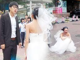 Ümumiyyətlə, Çində qəribə toy hadisələri çox baş verir. Bu ilin martında gəlin toy günü aradan çıxan bəyi elə həmin gün tapıb küçə boyu sürümüşdü. Polislər əsəbindən çıldırmış gəlinin əlindən bəyi güclə almışdılar.//publika