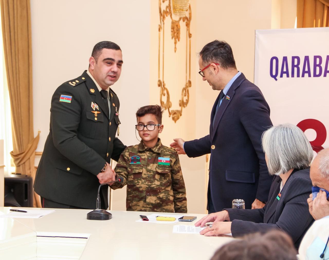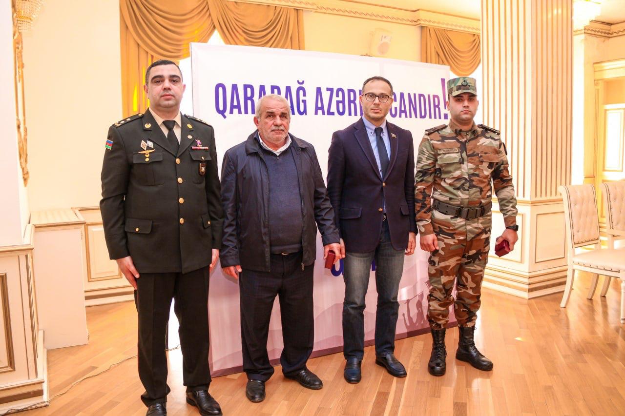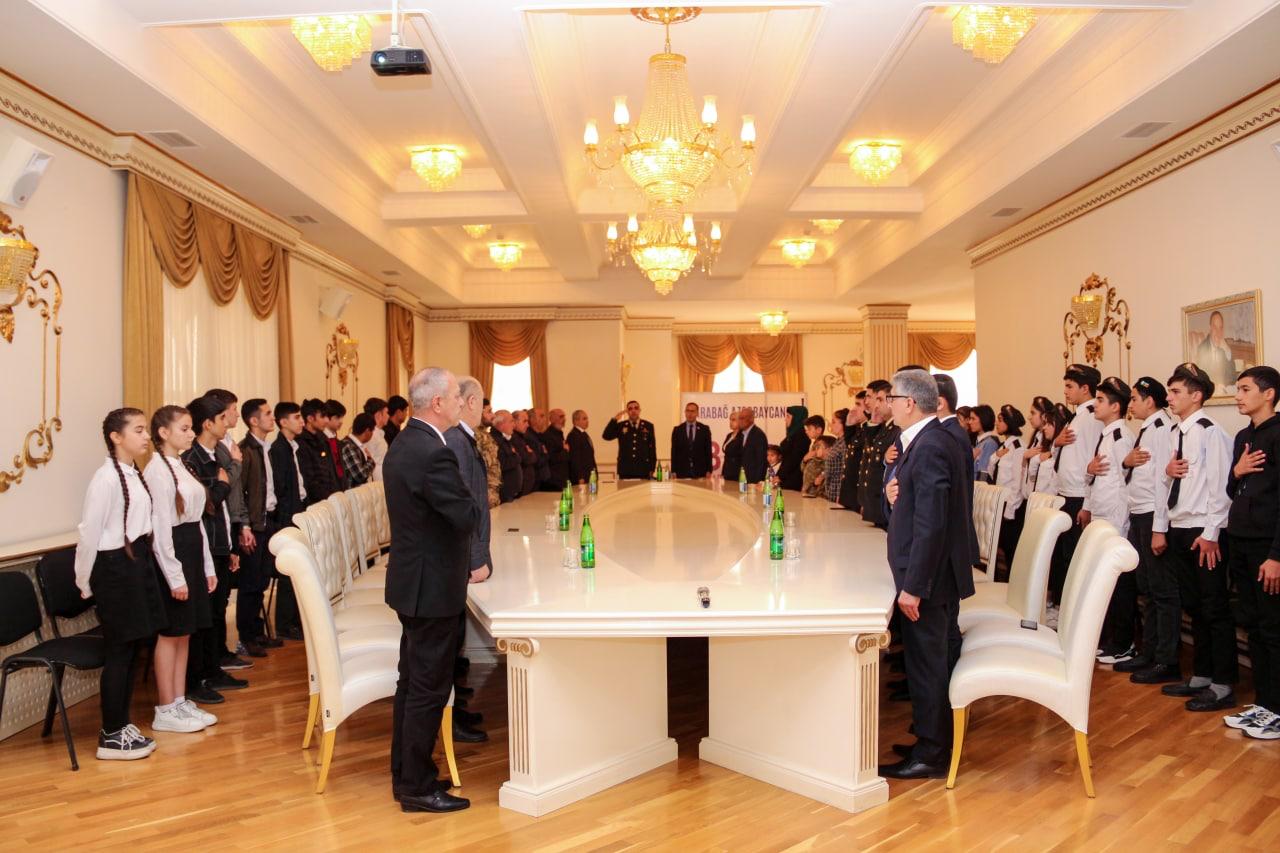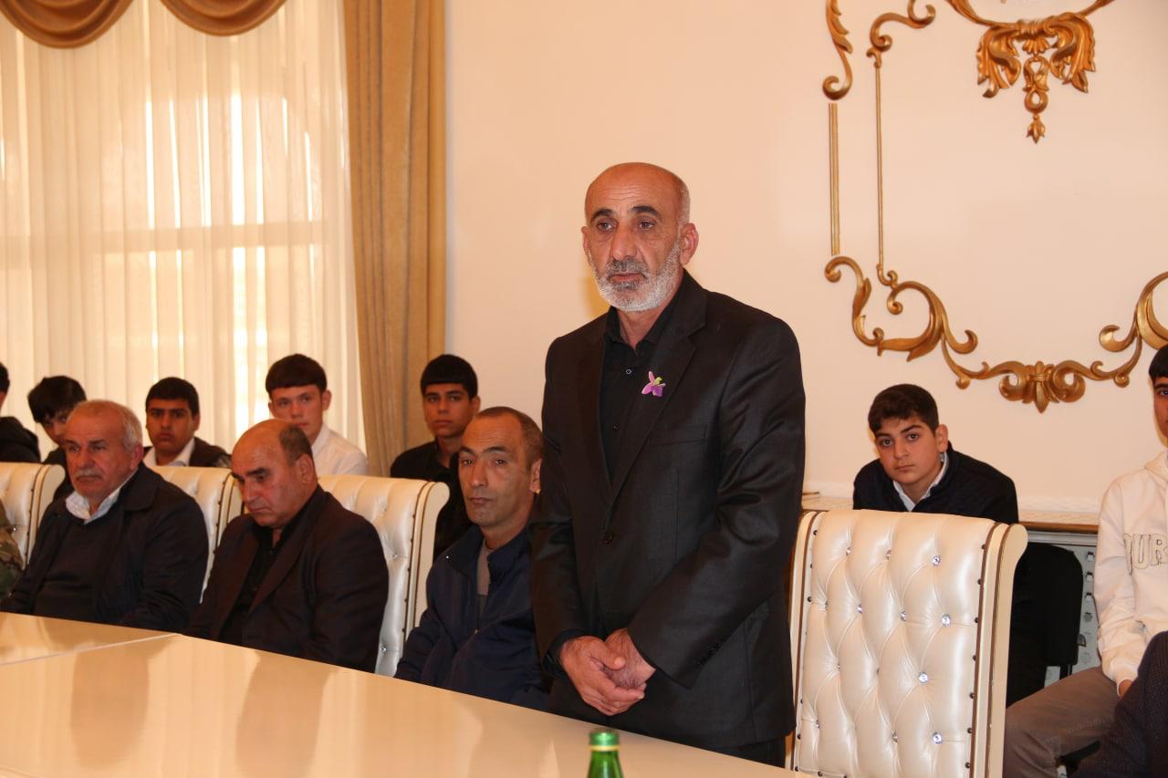 Daha sonra Zəfər gününün əzəmətindən və Ali Baş Komandanın sərkərdəliyi ilə qazanılan qələbəmizdən danışan Azərbaycan Respublikası Milli Məclisinin deputatı Ramil Həsən tədbir iştirakçıları qarşısında - "Çıxışımı şəhidlərimizin, burda iştirak edən şəhid ailələrimiz, şəhid atalarımız, şəhidlərimizin xanımları, eyni zamanda burda olmayan Vətən üçün canlarını fəda etmiş bütün şəhidlərimizin ailələri, anaları-ataları qarşısında baş əyərək başlamaq istəyirəm. Dəyərli qazi qardaşlarım, hər birimiz sizinlə fəxr edirik. Ceyhun müəllim çox yaxşı, çox gözəl addım atmısınız ki, bizi dəyərli şəhid ailələri, qazi qardaşlarımız və gələcəyimizin təminatçısı olan dəyərli məktəblilərlə görüşdürürsünüz. Dünən mənim ailəmdə baş verən maraqlı bir hadisəni sizlərlə bölüşmək istəyirəm. Balaca oğlum 4 yaşındadı, bağçaya gedir. Onlar Azərbaycan bayrağından paltar geyinib torpaq üçün canlarından keçən şəhidlərimizi anmaq, Zəfər gününü qeyd etmək üçün bir teatr səhnələşdirmişdilər. Oğlum evə gələndən sonra mənə sual verdi: -Ata mən orda bir adam gördüm onun iki ayağı da yox idi, deyirəm nə dedilər sənə, dedi mənə dedilər ki, o ayaqlarını itirib ki, biz yaxşı yaşayaq. Ona görə bildirirəm ki, milli şüur deyiləndə ən önəmlisi budur. Siz, biz və bizlərdən sonra gələn nəsillər utanmadan, şərəf və ləyaqətləri ilə qürurlu şəkildə mən Azərbaycanlıyam, mən Azərbaycan vətəndaşıyam, bu torpaq mənimdir deyib yaşaya bilməsi üçün Şəhidlərimiz öz canlarını, qazilərimiz isə yaşamaq üçün vacib olan əzalarının bir parçasını torpaq üçün fəda ediblər. Odu-alovu, əzab-əziyyəti görən Vətən torpağının hər qarışı üçün öz qanını axıdaraq Ali Baş Komandan cənab İlham Əliyevin bilavasitə qəti iradəsi altında öz torpağını şərəfsiz düşməndən qurtaran şəhidlərimizin, qazilərimizin yaşadığı anı biz heç birimiz yaşaya bilmərik. Biz sadəcə bununla bağlı fikir söyləyə bilərik. Ona görə də, biz hər zaman onların ruhu qarşısında baş əyir və onlara borcluyuq. Ordu o vaxt güclü olur ki, ona rəhbərlik edən komandiri öz əsgəri ilə bərabər ölümün gözünə dik baxır və Vətən torpağını niyə və nə üçün qorumaqla bağlı yetərincə iradəyə, gücə, qüvvətə, əzmə, inama sahib olaraq əsgərini döyüşə aparır. Komandır də o vaxt güclü və inanılmaz özündə güc, qüvvət hiss edir ki, Ali Baş Komandanı qüdrətli olsun. Bizlərin şansı onda gətirib ki, Ali Baş Komandanımız inanılmaz qüdrətə, iradəyə, qorxmaz cəsarətə, dünyanın bu qədər ölkələrinin üstümüzə gəlməsinə baxmayaraq torpağının bir qarışını belə düşmənə verməməklə bağlı əzmkarlığa sahibdir. Mən hər yerdə dediyim fikri burda da demək istəyirəm, şəhidlərimizin və qazilərimizin hansı rayondan olması önəmli deyil, çünki biz torpağımızı düşməndən azad edəndə, can verəndə, şəhid, qazi olanda kimin hansı rayondan olduğuna baxmırıq, erməni də bizə baxanda kimin hardan olduğunu düşünmür. Görüşlərdə gənclər mənə sual ünvanlayır, necə baxırsınız biz ermənilərlə bağlı təbliğatımızı uşaq və yeniyetmələrlə necə qurmalıyıq? Cavab olaraq bildirirəm ki, biz millət olaraq böyük millətik, cənab Prezident İlham Əliyev iradəli və güclü sərkərdə, dövlət xadimidir, inanılmaz diplomatdı. Zaman-zaman başımıza gələn bu bəlalar 1905,1918,1948,1988 bunların hər birinin təkrarlanmasının səbəbi ondan ibarətdir ki, biz unutqanıq, lakin unutmamalıyıq. Biz düşmən olmalı deyilik, təbii ki, gələcəkdə sülh müqaviləsi imzalanacaqsa normal insani münasibətlərimizi göstərəcəyik, amma ehtiyatımızı əldən verməməliyik, keçmişimizi, Xocalı faciəsini unutmamalıyıq. Biz bilməliyik ki, düşmən bu gün Azərbaycanın dəmir yumruğunu gördüyü üçün sülhə gəlir. Qonşumuzu dəyişə bilmərik, bu bir tərəfdən xeyirdi ki, biz güclü, qüvvətli və iradəli ola bilək, milli şüurumuz güclü olsun, bu da çox önəmlidir. Bu gün artıq qalib xalqın övladlarıyıq. Məhz Ali Baş Komandanımızın iradəsi, şəhidlərimizin qanı, qazilərimizin cəsarəti, müharibə veteranlarının şücaəti nəticəsində biz bu gün dünyaya başımızı dik qaldırıb fəxrlə baxa bilirik. 1995-ci ildə mən orta məktəbi bitirmişəm və orta məktəbi bitirəndə biz məğlub ölkənin yeniyetmələri idik və həqiqətən də gizlənməyə yer axtarırdıq, bu gün isə siz əziz yeniyetmələr, dəyərli şagirdlərimiz, qalib ölkənin şagirdlərisiniz və inşAllah da qalib ölkənin tələbələri, daha sonra da böyüyərək öz ölkənizə xidmət edən vətəndaşları olacaqsınız. Cənab Prezidentin qeyd etdiyi kimi Qarabağı görməyən bizim gənclər məhz milli şüur, milli qeyrət, milli cəsarət hissi ilə tankın üstündə torpaqları azad etdilər və Allah qismət eləsin ki, bundan sonra müharibə görməyək. Milli şüurumuzu, milli ləyaqətimizi, vətənimizə bağlılığımızı əsla və əsla unutmayaq. Dövlətə, millətə sadiq olaq. Öncə öz millətimizi sevək, sonra da başqa millətlərə hörmətlə yanaşaq. Mən bu yolda hər birinizə uğurlar arzulamaq istəyirəm, bu yolda Ali Baş Komandanımızın öndərliyində daha da güclü, qüdrətli, qüvvətli olacağımıza inanıram. Bir gün gələcək biz daha da qüdrətli Azərbaycanın şahidi olacağıq, məhz Ümummilli liderimizin layiqli davamçısı cənab prezidentin başçılığı altında. Bu yolda hamınıza uğurlar arzulayıram, şəhidlərimizin ruhu qarşısında bir daha baş əyirəm, eyni zamanda şəhid atalarımızın, analarımızı
