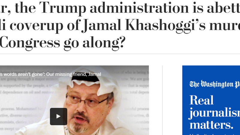7News.Az xəbər verir ki, qəzet cinayətlə bağlı "Bu ana qədər Donald Tramp hökuməti Səudiyyə Ərəbistanının Camal Qaşıqçı cinayətini ört-basdır etməsinə dəstək verdi. Konqres də bu prosesə daxil olacaqmı?” başlıqlı məqalə dərc edib.