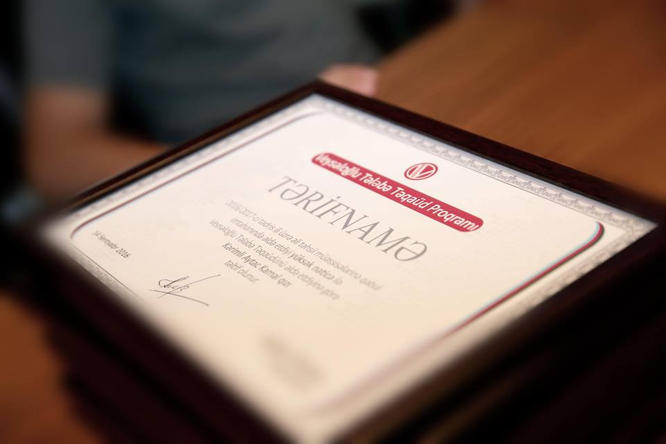 Qeyd edək ki, Veysəloğlu şirkətinin 9 nəfər əməkdaşının övladı 2016-2017 təhsil ili üçün ali təhsil müəssisələrinə qəbul imtahanlarından uğurla keçərək ölkəmizin müxtəlif ali məktəblərinə qəbul olublar. Onlar qazandıqları yüksək nəticəyə görə Veysəloğlu Tələbə Təqaüd Proqramının İştirakçısı olmağa haqq qazanıb. Belə ki, şirkət əməkdaşlarının ali məktəbələrə qəbul imtahanında 600 baldan yuxarı nəticə göstərən övladları ilə bərabər, 500-600 bal arası nəticə göstərən övladlarına da aylıq təqaüd ödəniləcəkdir. Bundan başqa 300-500 bal arası nəticə göstərənlərə isə birdəfəlik mükafatlar verilib.