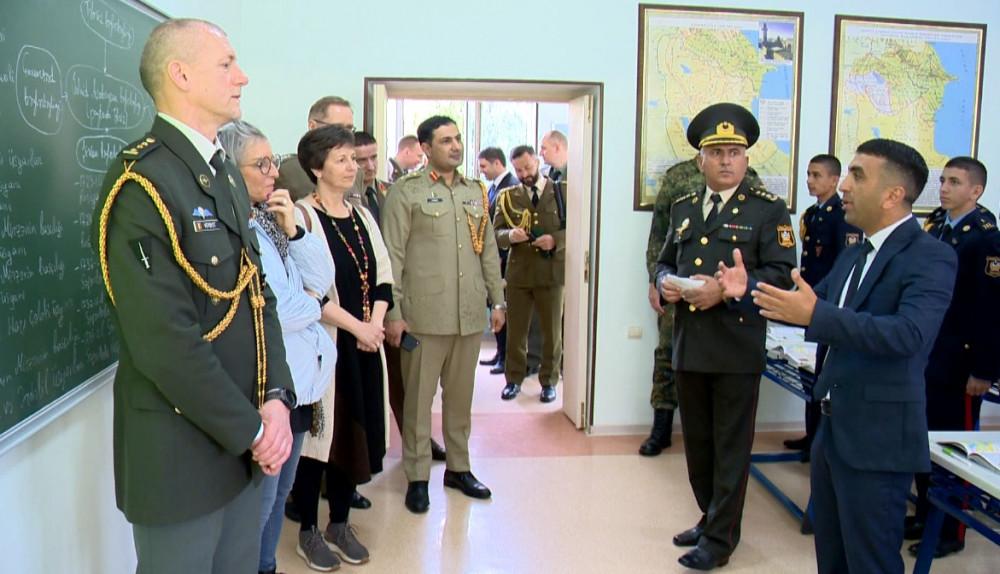 Sonra Heydər Əliyev adına Hərbi Liseydə olan qonaqlara məlumat verilib ki, 1998-ci ildə 56 kursantla fəaliyyətə başlayan liseydə bu gün ölkəmizin müxtəlif bölgələrindən yüzlərlə gənc hərbi təhsil alır. Nümunəvi hərbi tədris sisteminə və möhkəm maddi-texniki bazaya malik olan hərbi lisey silahlı qüvvələrin peşəkar hərbi kadrlarla təminatında önəmli rol oynayır. Liseyin məzunları Vətən müharibəsində peşəkarlığı və qəhrəmanlığı ilə qələbədə böyük paya sahib olublar. Liseydə kursantların təhsili, yaşayışı və asudə vaxtlarının səmərəli təşkili təmin edilib, gündəlik mətbuatı izləmək, şahmat və digər idman növləri ilə məşğul olmaq imkanı yaradılıb. Burada kursantların sağlamlığı, fiziki hazırlığı və qidalanması da diqqət mərkəzindədir. Müasir avadanlıqlarla təchiz olunan tibb məntəqəsi, idman zalı, futbol meydançası, açıq və qapalı idman qurğuları və digər obyektlər kursantların istifadəsinə verilib.