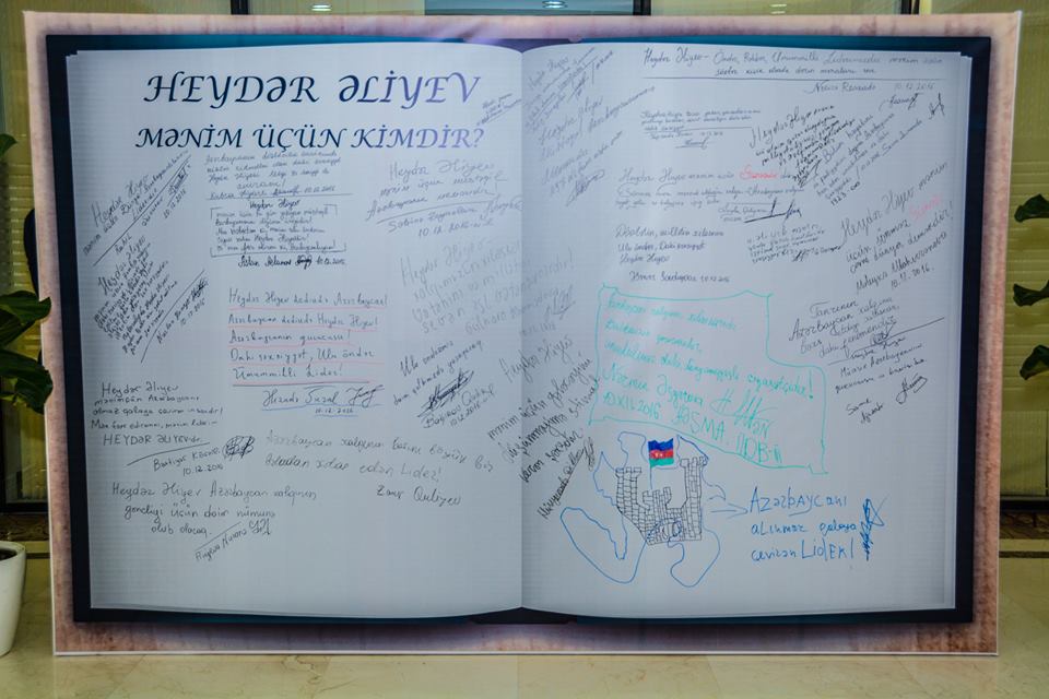 Tədbirdən öncə iştirakçılar ulu öndərin YAP Binəqədi rayon Təşkilatının inzibati binası önündə ucaldılan abidəsinə gül dəstələri qoyaraq əziz xatirəsini ehtiramla yad etdilər. Tədbir iştirakçıları ulu öndərə həsr olunmuş "Heydər Əliyev mənim üçün kimdir?” adlı xatirə stendinə ürək sözlərini yazdılar.