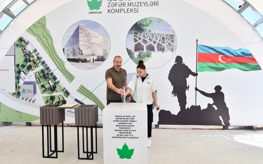 Azərbaycan Prezidenti İlham Əliyev və birinci xanım Mehriban Əliyeva mayın 26-da Zəngilan rayonunda İşğal və Zəfər muzeyləri kompleksinin təməlqoyma mərasimində iştirak ediblər.